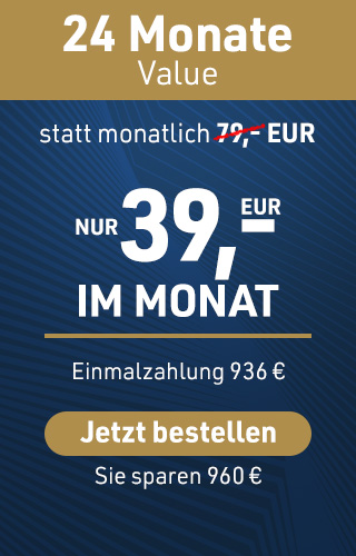 - 24 Monats Abo für 39€/Monat (bei Einmalzahlung in Höhe von 936€)